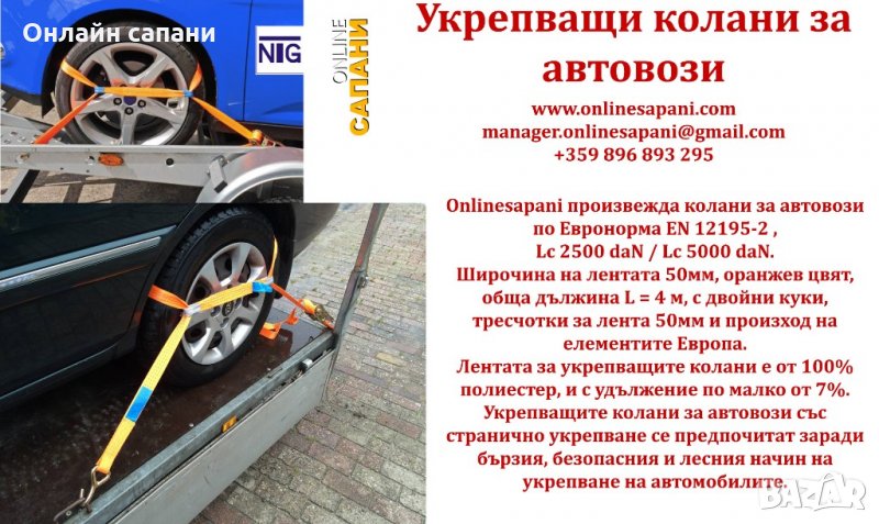 Onlinesapani произвежда колани за автовози по Евронорма EN 12195-2 , Lc 2500 daN / Lc 5000 daN.