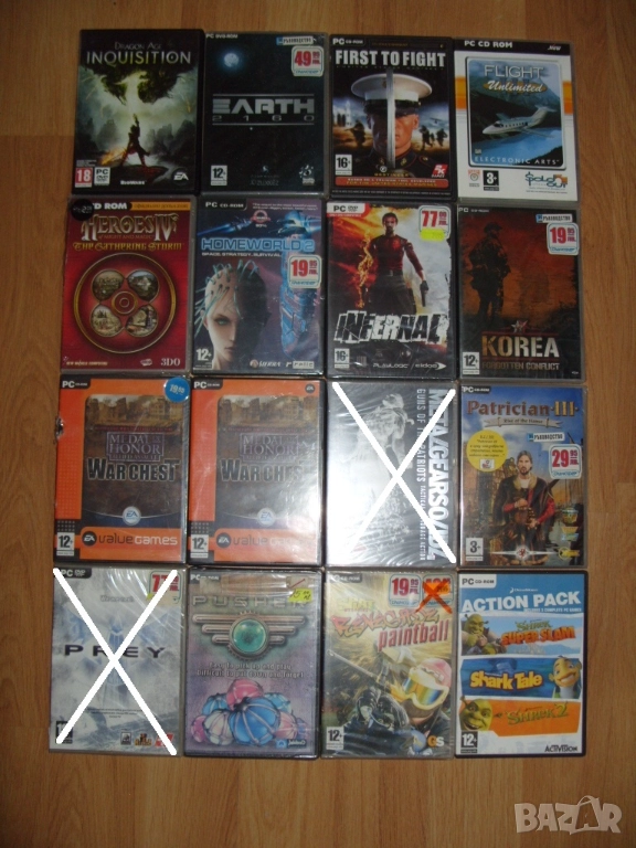 Всички игри които са продадени са задраскани на снимките и не са изписани в списъка.