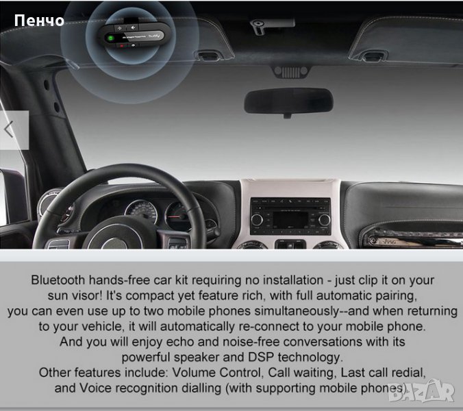 Безжичен Bluetooth свободни ръце за разговори по мобилен телефон в кола Hands Free предавател говори