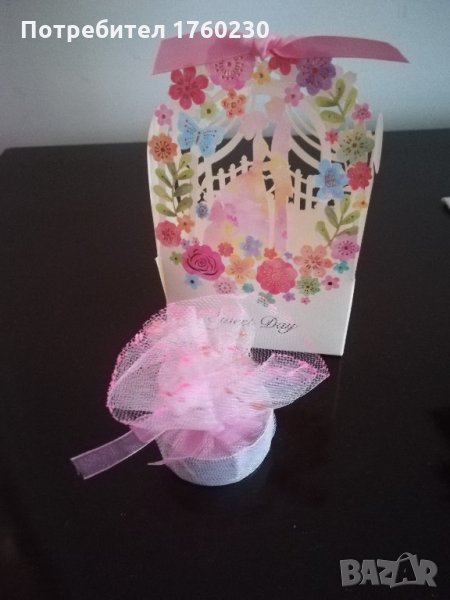 Продавам подаръци за гости на сватба, включващи ароматизирана свещ, опакована в тюл с розова панделка. Цена 0,80 лв. за брой. Наличност 22 броя.
