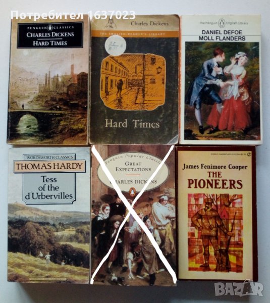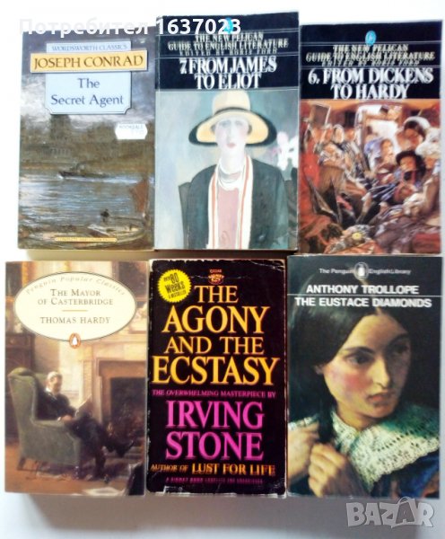 книги на английски език, предимно художествена литература 19-ти и 20-ти век. Две трети от книгите са чисто нови, а останалите са в отлично запазено състояние. Цените на по-старите книги са по 6 евро за брой, а на новите са 8-10 евро за брой - може и по договаряне, в зависимост от автора/заглавието. Някои от книгите на снимките вече са продадени, но списъкът е актуализиран. Разгледайте го и, ако Ви интересува нещо, пишете или се обадете на тел.: 89*****68