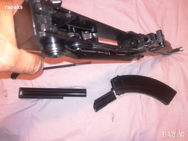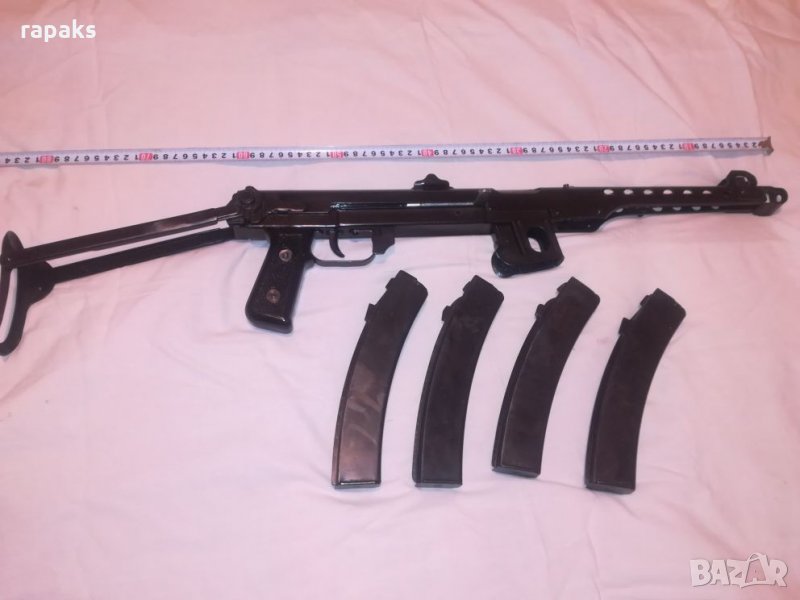 Калашник-Шмайзер/. Тежи 4090 гр. и е с обща дължина 88 см. Зарежда, щрака и му се сваля пълнителя, но не стреля. На свободна продажба, ако имате разрешението на тъща и съпруга.