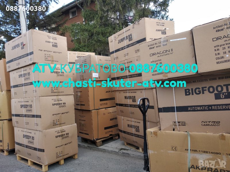 останалите продавачи на тези АТВта! Складът ни в КУБРАТОВО-СОФИЯ се намираи на удобно място на хората идващи по някоя магистрала от провинция- БЛИЗО до ДЖАМБО и Гуми Диана на ВЛИЗАНЕ в СОФИЯ от БОТЕВГАДСКОТО ШОСЕ , а за хората идващи от към София - само на 8км.от Сточна гара!