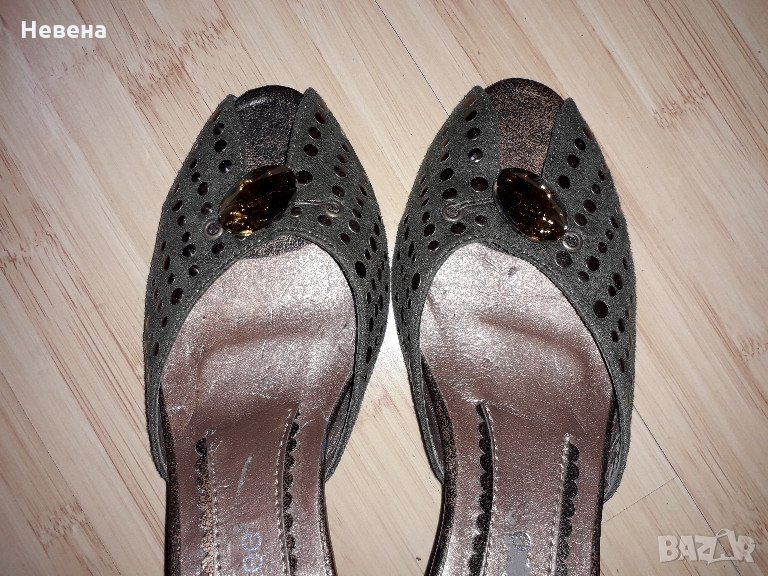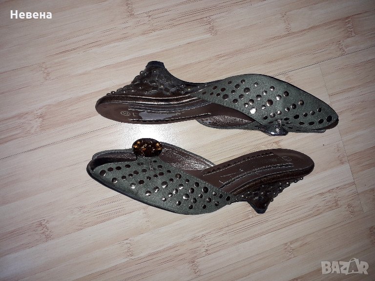 Дамски чехли № 36, тъмно масленозелени отпред с прозрачно копче, с малки капси.Отговарям на съобщение тук, изпращам с куриер или лично получаване...