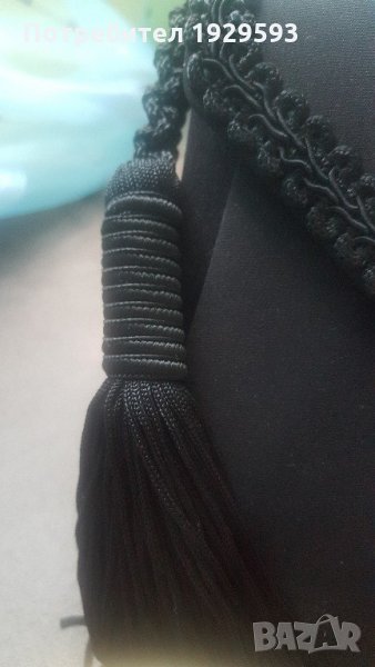 Черна стилна чантичка с размери 22 см/ 15 см с дълга дръжка и пискюл отстрани като аксесоар