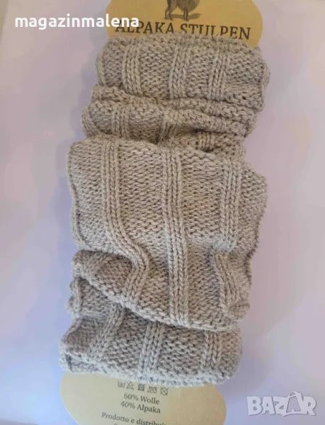 Susan Calze Alpaka Stulpen дамски вълнени калци от глезени до колена, произведени от италианската марка за вълнени гети Susan Calze. Калците са топли, меки и са изработени от висококачествени фини прежди от вълна в комбинация с алпака вълна. Подходящи са и за подгревател на ръце. Алпаката от вълна е мека, лека, топла и задържа и изолира топлината; съдържа 24 естествени оттенъци, т.е. не е нужно допълнително третиране за оцветяване на гетите; не се бръчка и не се разтяга. Калците са произведени в Италия. Цената е за 1 чифт = 2 бр. чорапи. Състав: 60% вълна, 40% алпака вълна
