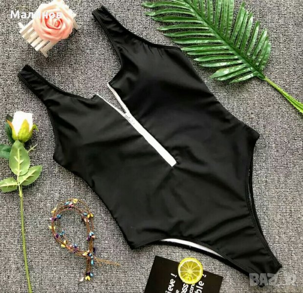 Цял бански с високо изрязване, подплънки и цип от @Bellissima swimwear. Наличен в зелено в М размер, ,в черно S, M, L размери и в бяло S размер.