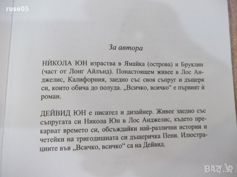 Книга "Всичко , всичко - Никола Юн" - 320 стр. → Обява 21681411