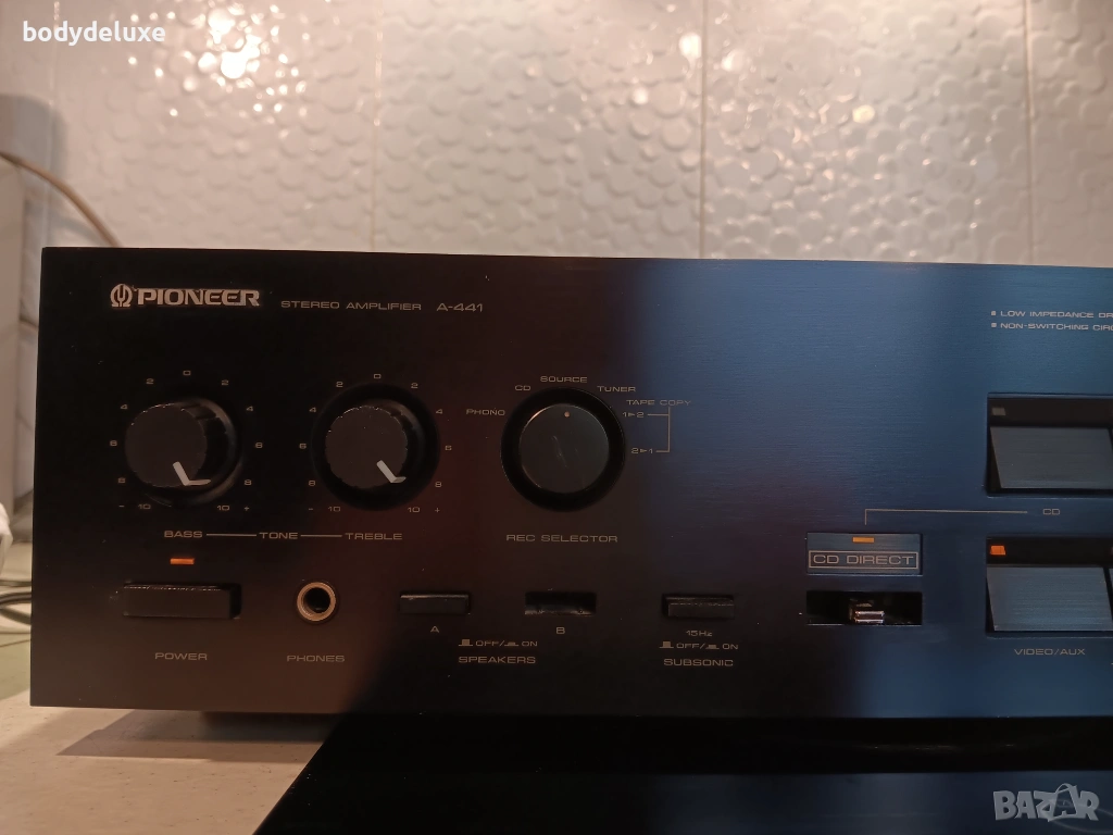 - Total harmonic distortion: 0.008% (20-20,000 Hz, 58 W, 8 Ohm)