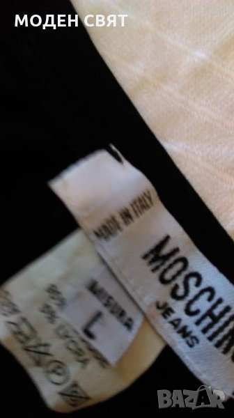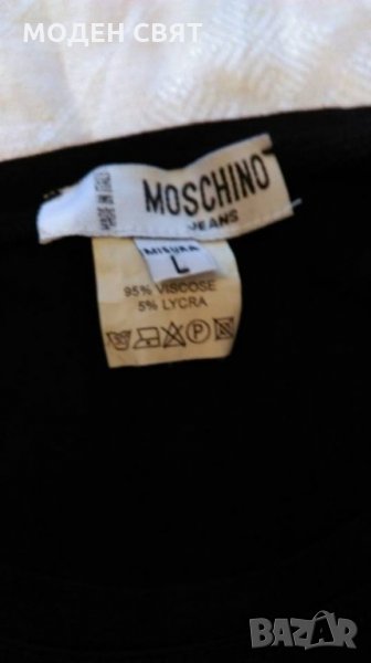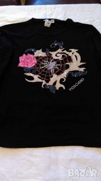 Дамска блуза MOSCHINO-блузата е много запазена.Отговаря на №М. Дълъг ръкав.Материята е тънко трико.Няма забележки.Дължина от рамото до долу е 52см.