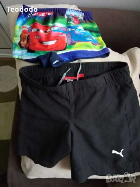 Запазени, без забележки. Цената е за : 3/4 дънки + потник, панталонки и блузка цена 15. Бански 4-5-6 г. и шорти puma ръст 122. Цена за двете 8 лв.