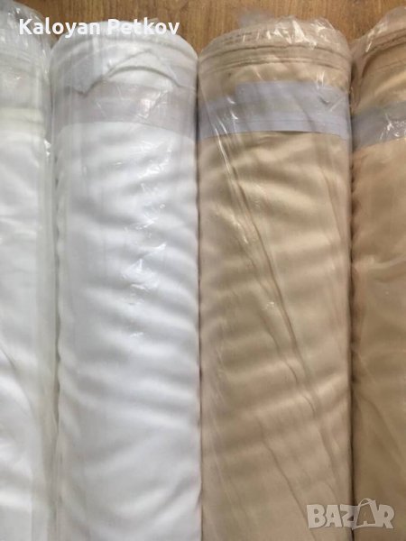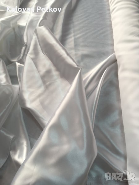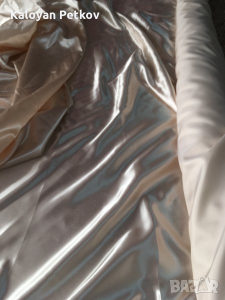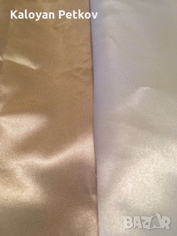 Материя Сатен - 100% полиестер,150см ширина ,140гр./м2 ,в наличност цвят бял и цвят екрю. Сатен е плат. Често този плат се нарича още атлаз. Сатен, според тълковния речник, е тъкан, с лъскава лицева страна и матова задна,дишаща материя, изсъхва бързо, щадяща кожата.Сатен Полиестер 100 % е синоним на изискана визия и достъпност. Меки на пипане материи.Платът притежава присъщата на сатена лъскавина,която внася лукс и светлина.Подходящ за изработка на различни видове пердета,покривки за маса, салфетки, хангали, тишлайфери, карета,декоративни възглавници,подходящ за сублимация,изделия за сватбени агенции,партита,мероприятия,всякакъв вид калъфки,калъфки за столове,панделки,декорации както и за всякакъв вид украса,изделия за траурни агенции и други,за вътрешни и външни завеси,за външни украси като облицовки,покривала,завеси за пергола и за други конструкции,за вътрешни украси облицовки,покривала,Както всички полиестерни платове, сатен полиестер е подходящ за честа употреба с 25 000 цикъла на пране.Препоръчително пране до 40°C ,лесен за почистване,без хлор, не абсорбира влага, съхне бързо ! Цената на линеен метър 4 лв. Продават се в опаковани топове от около 50 метра до около 70 метра.