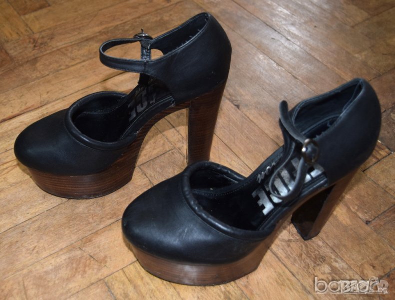 Defice London високи токчета с платформа естествена кожа черни → Обява 21721637
