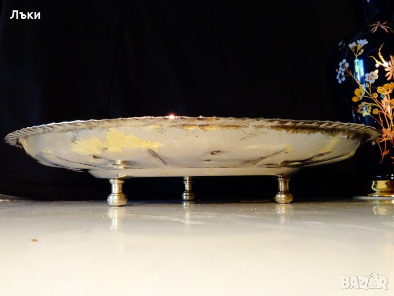 сервиране,тепсия,софрия,изработена от масивен бронз,много дебело посребрена с