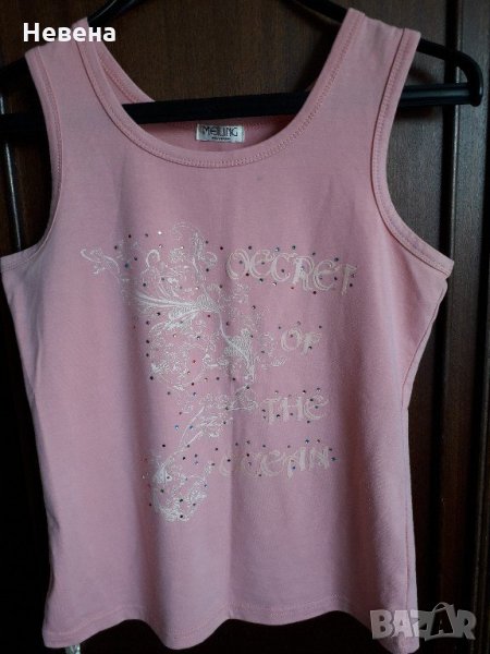 Лятна памучна блуза без ръкав потник еластичен, красив розов цвят, с блестящи цветни камъчета отпред. Размер 44-46 български номер, бюст 42-44 до 46 см отпред се разтяга /или обиколка 84-88 см до 92 см се разтяга/. Отговарям на съобщения тук, изпращам с куриер с отстъпка, преглед и тест, или лично предаване в София.