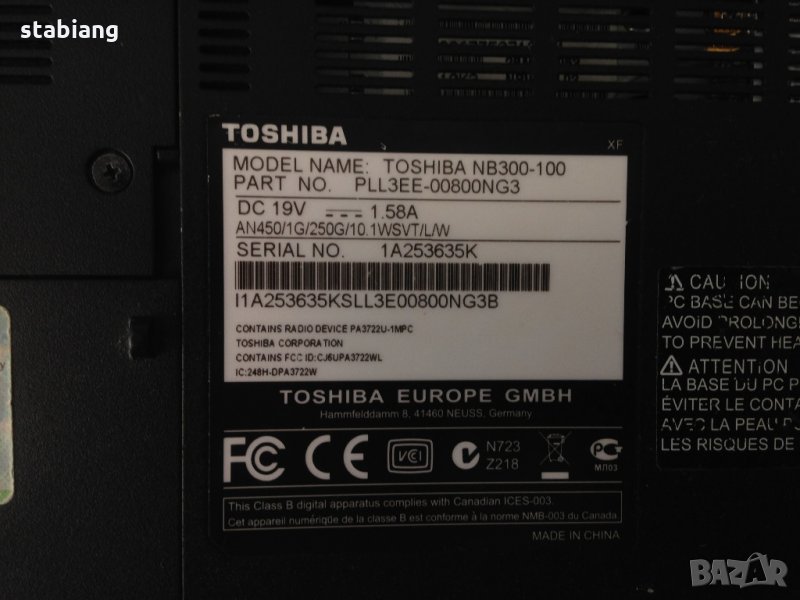 Лаптоп НА ЧАСТИ – Toshiba NB300-100 → Обява 21730754