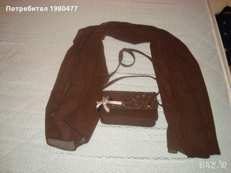 Официален комплект с шал,подарък чанта в шоколадово кафяво → Обява 21759430