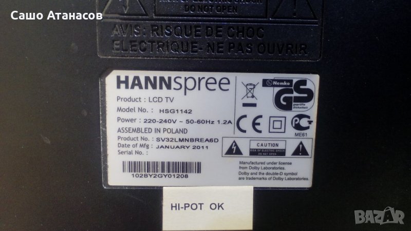 Модули от телевизор HANNspree HSG1142 със счупена матрица (панел T315HW05 V.1)