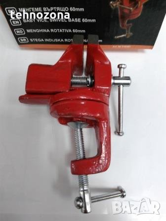 Удобно, малки габарити, лесно се монтира/демонтира на всякакви плоски повърхнини, челюстите имат възможност да се завъртат на 360 градуса за нестандартни повърхнини и детайли. С фиксиращ - застопоряващ резбови механизъм.