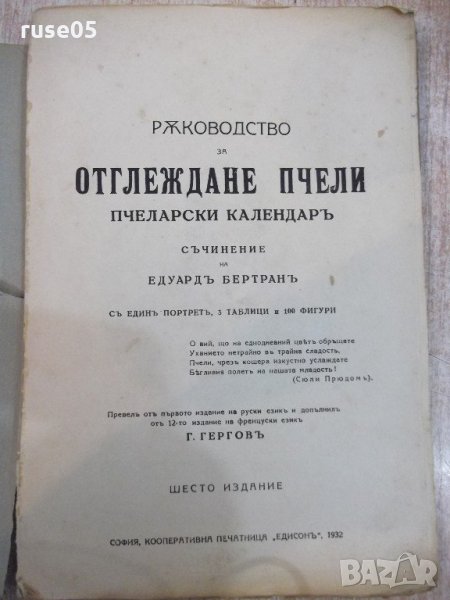 Книга "Ръководство за отглеждане пчели-Е.Бертранъ"-180стр → Обява 21784935