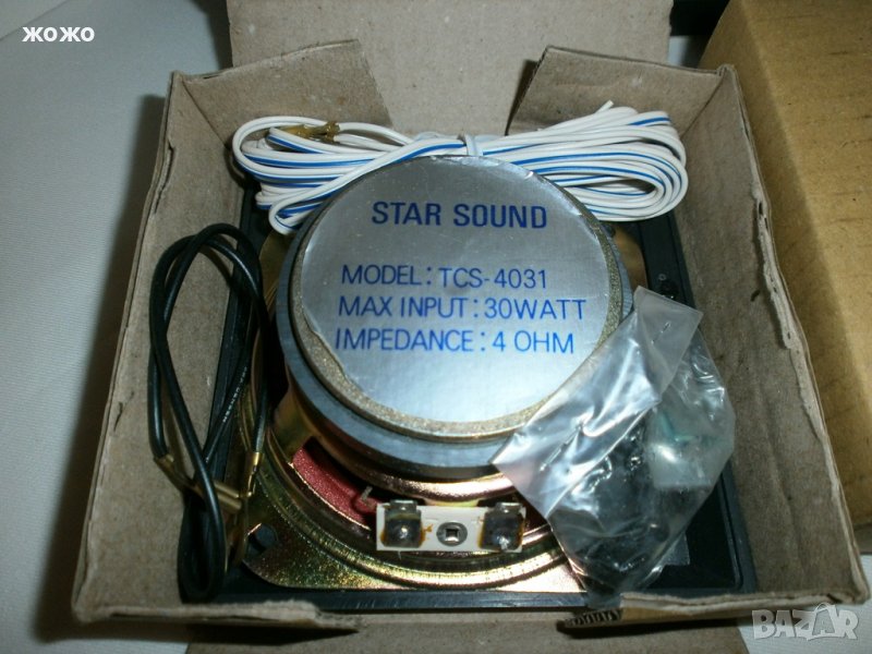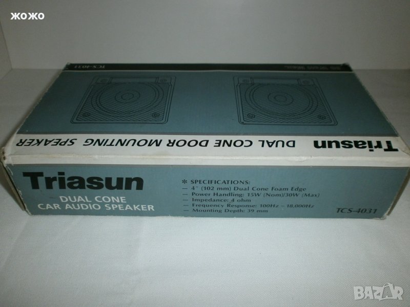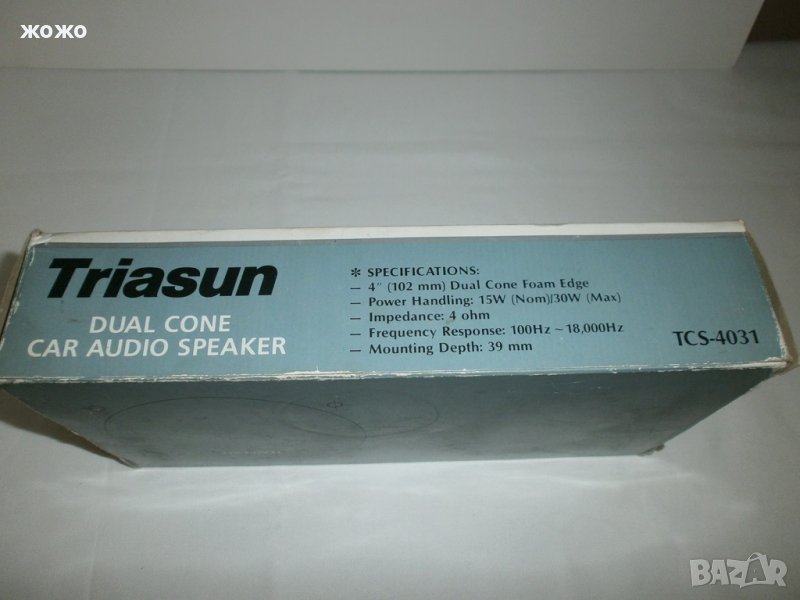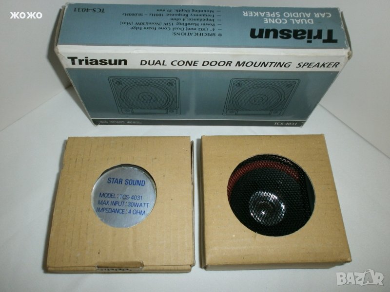 TRIASUN mod:TCS-4031 с размери 4"(102мм.) - двулентови, ном.-15W; макс.-30W на 4 Ohm, честотен диапазон - 100Hz~18,000Hz., в комплект с решетки и кабели + опаковка.