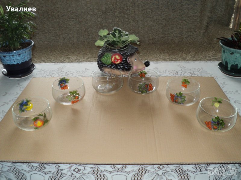 6. Продавам стъклени чинийки комплект от 6 бр. с размери 14,5см/11,5 см. - цена на комплекта - 6 Е