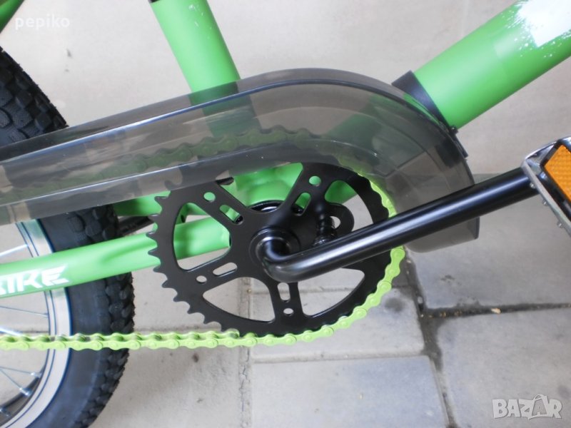 НОВ велосипед ВМХ SPORT BIKE 20 цола модел 2018г. метална рамка 20 цола с една скоростметални курбели, алуминиеви педали, пластмасов предпазител на веригата, цветна верига, чашки NECO, безконечно въртене на кормилото, предна и задна алуминиеви вибрейк спирачки, алуминиеви лостчета на спирачките цветни, цветни брони на спирачките, спортна седалка ВМХ SPORT, предна и задна алуминиеви едностенни усилени капли, никелирани спици, гуми със спортен грайфер КЕНДА 20 х 2.125, предна и задна емайлирани главини VELOTEC, алуминиева лапа, много здрав велосипед, размер на рамката 28 х 55 см. тегло 15.9 кг. четири метални пега от страни на осите на главините, много добър велосипед.