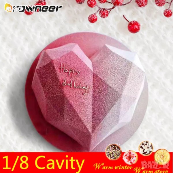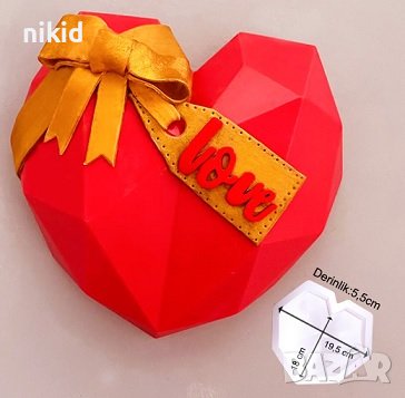 3D Огромно релефно сърце диамантено геометрично силиконов молд форма за кекс Свети Валентин торта → Обява 21811894