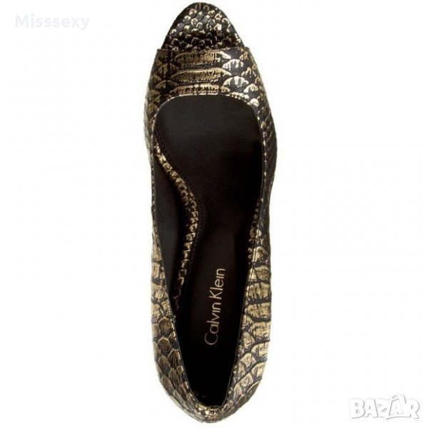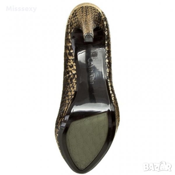 ПРОМО 🍊 CALVIN KLEIN 🍊 Кожени дамски сандали в златисто и черно № 35-38-39 нови с кутия