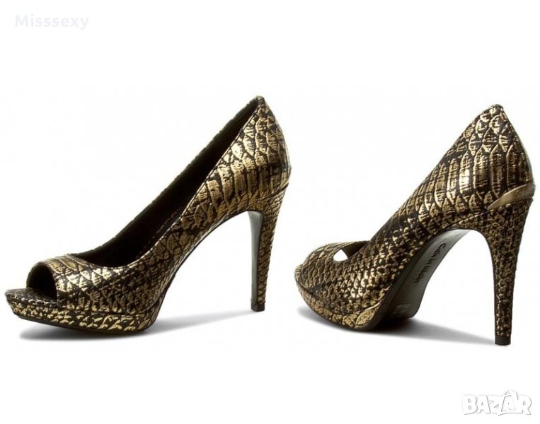ПРОМО 🍊 CALVIN KLEIN 🍊 Кожени дамски сандали в златисто и черно № 35-38-39 нови с кутия → Обява 21821460