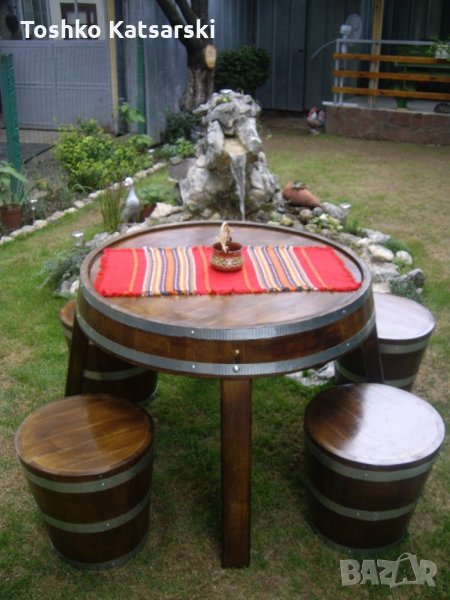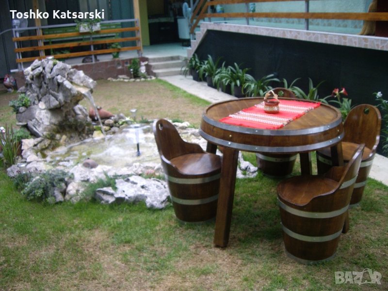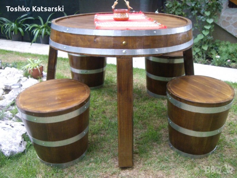 Изработка на маси и столове от масивен дъбов материал.Цената на 1 стол с облегалка е 250лв. стол без облегалка-цена 200лв.Маса-цена 250лв.Всички детайли са слепени,обръчите са захванати с рапидни винтове.
