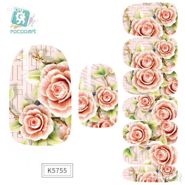 К5755 слайдер ваденки цветя 3D ефект водни стикери за нокти маникюр → Обява 21825265