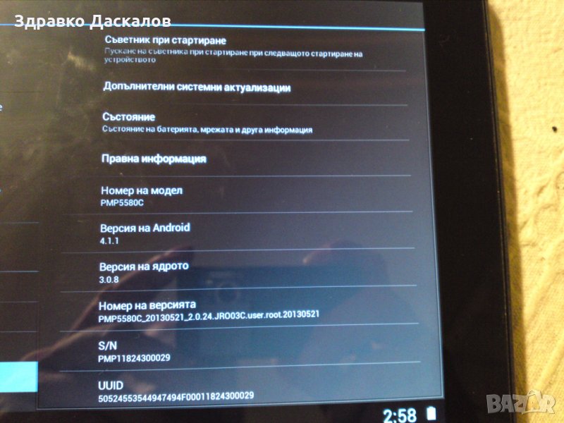 Таблета работи без проблем,но понякога прави самопроизволно натискане на тъча.Спецификациите ги има на снимките.Продава се с кутия и зарядно.