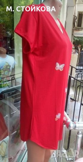 M - гръдна обиколка - 108 см., дължина от рамото до долу 84 см. в цвят червено