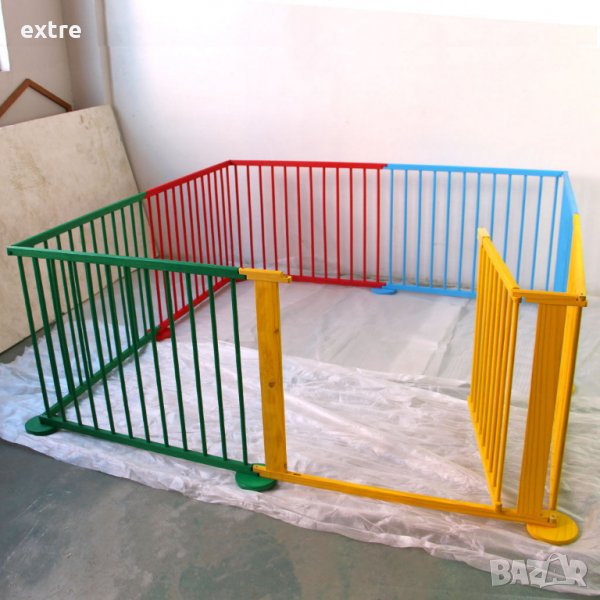 Продавам дървена детска Сгъваема ограда/кошара за игра 8 елемента → Обява 21853454