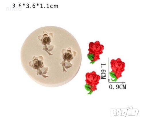 3 мини розички роза цвете с дръжка силиконов молд форма украса декор торта мъфини фондан шоколад → Обява 21855450