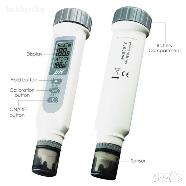 Водоустойчив уред тип писалка за pH с голям LCD дисплей и превключваем температурен режим °C / °F. Комплектът е снабден с 4бр. батерии 1.5V и 3 бр. буферни прахчета, които ви помагат да калибрирате уреда и да постигнете най-добри резултати. По-долу е описана подробна информация, която трябва да знаете за всеки елемент.