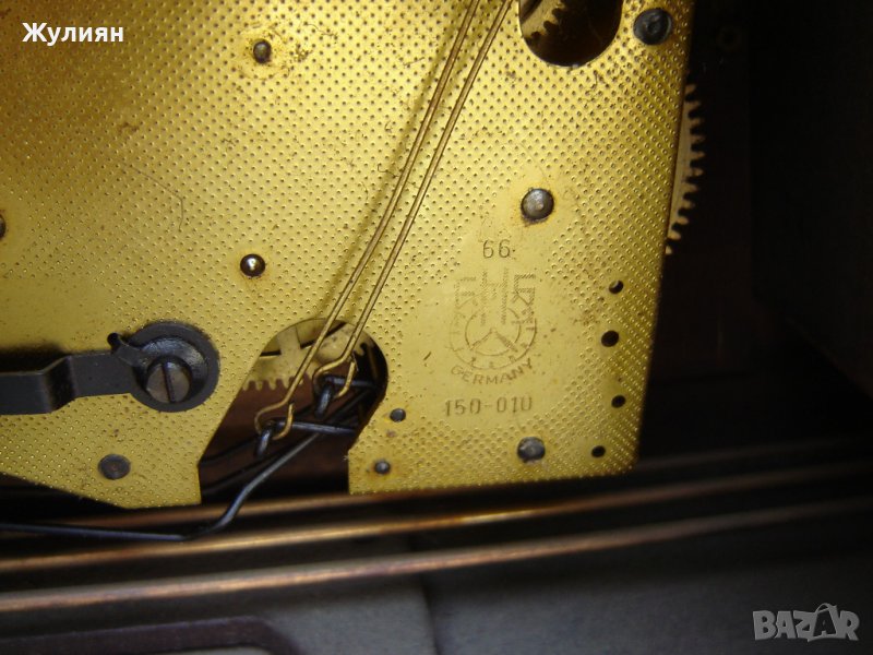 Часовника работи отлично, чудесен гонг наподобяващ мелодия. Състоянието се вижда от снимките, дължина - 52см. височина - 19см.