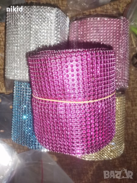 Лента камъчета камъни диаманти кристали кристални кант борд сребрист златист розов торта сватба деко → Обява 21879822