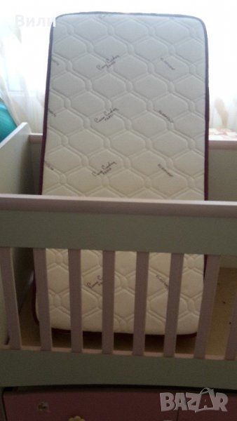 Матракът към него е 120/60 MAGNIFLEX Pierre Cardin, анти-алергичен, само с протектор е ползван, не са напикавани!