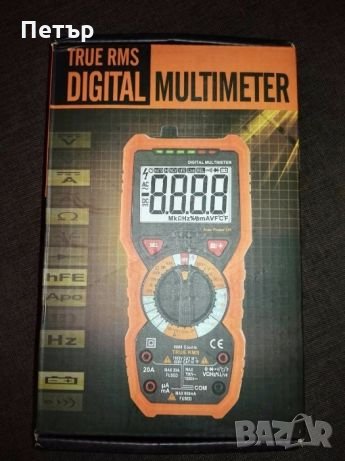 мултицет. Измерва съпротивление до 60Мом, има тестер за диоди и верига със звуков сигнал, измерва температура по целзий - до 300 С и по фаренхайт, измерва капацитет от 6nF до 100мF - измерва с точност nF, mF и μF постоянен и променлив ток до 20А, напрежение променливо до 750V и постоянно до 1000V, честота на променливия ток, измерва NCV (вграден датчик, който безжично детектва напрежението), измерва hfe (бета на транзистори NPN и PNP), измерва LIVE. Има осветление на дисплея и фенерче на гърба на самия уред, както и възможност за запаметяване на измерените стойности след измерване. Има автоматично Power OFF. Размери 190mm(L)x89mm(W)x50mm(H), тегло 380гр. Уредът работи с 4бр. батерии 1.5V AA.
