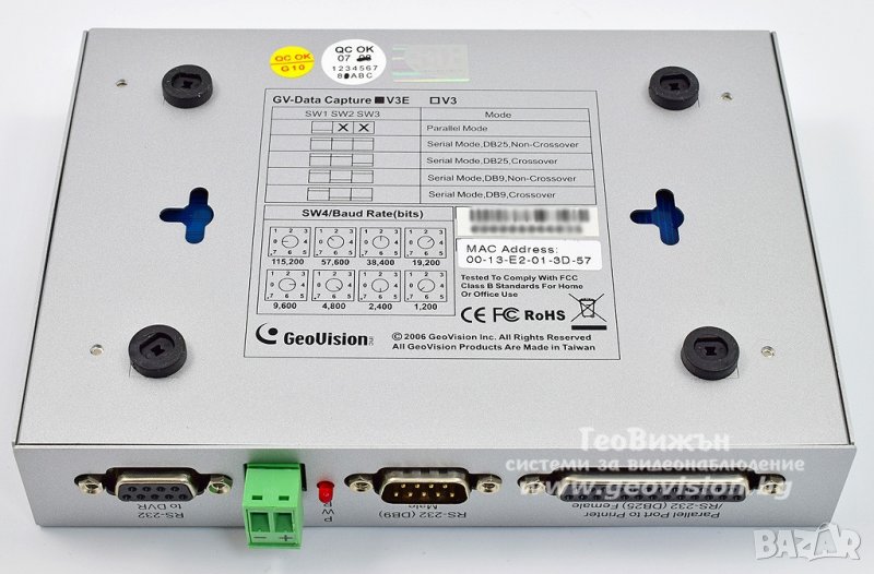 GeoVision GV-Data Capture V3E - външно устройство за връзка с касов апарат /показва касовия бон на избрана камера/ RS-232, Ethernet