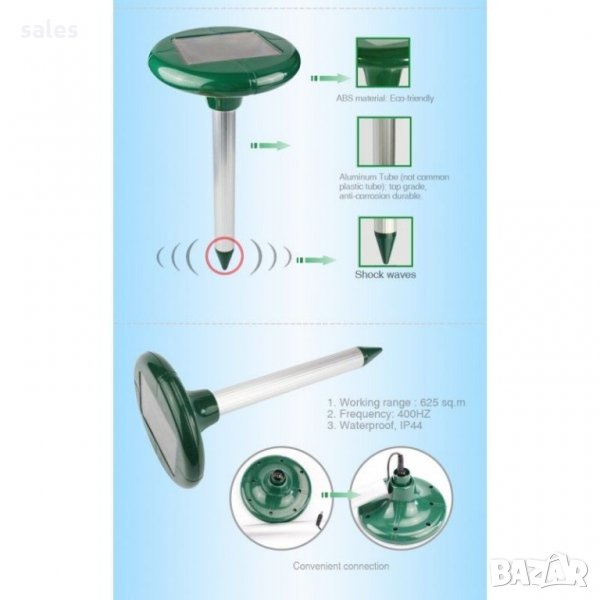Ултразвуков уред за борба с къртици, сляпо куче и змии, снимка 1 - Градинска техника - 21922522 Ултразвуков уред за борба с къртици, сляпо куче и змии, снимка 2 - Градинска техника - 21922522 Ултразвуков уред за борба с къртици, сляпо куче и змии, снимка 3 - Градинска техника - 21922522 Ултразвуков уред за борба с къртици, сляпо куче и змии, снимка 4 - Градинска техника - 21922522 1/4