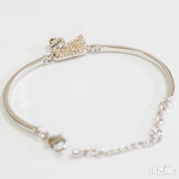 Акцент под формата на лебед с бледорозови кристали Swarovski Закопчаването е с карабинер