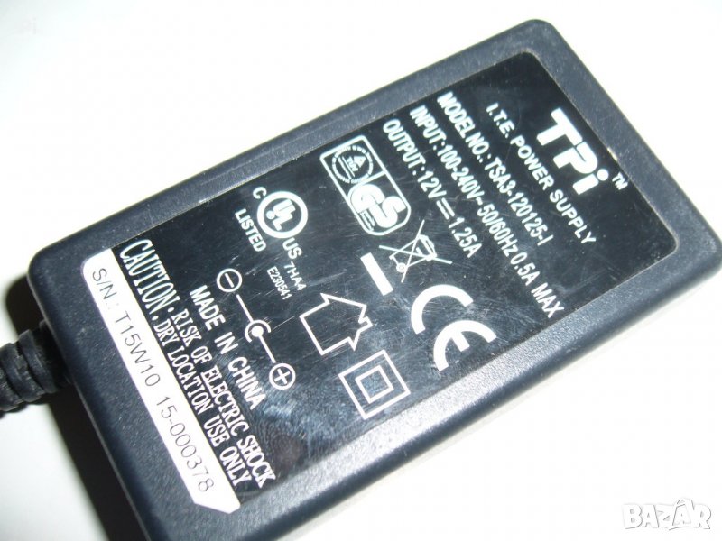 Качествен, оригинален адаптер TPI TSA3-120125-I 12V 1.25A 4.0 мм 1.6 мм