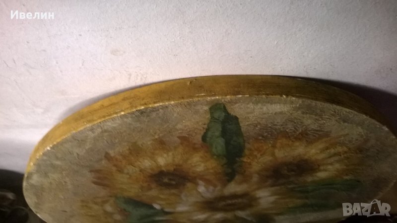стара картина-цвета.масло на платно в подрамка с диаметър .60см.