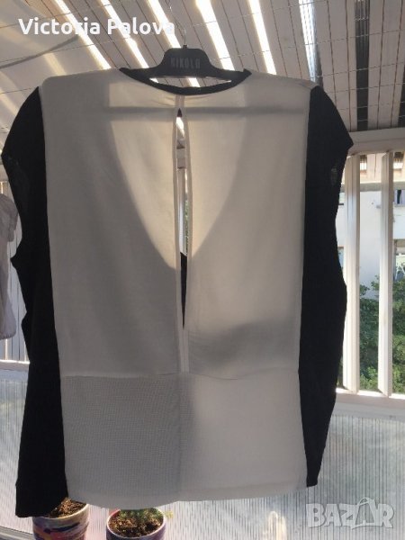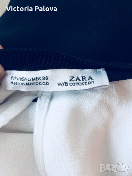 Необикновена блуза на ZARA,интересен модел и апликации отнчерен тъмно-син и бвл цвят,като фактурата на плата също е различна.интересна блуза,подходяща и за официални представяния.