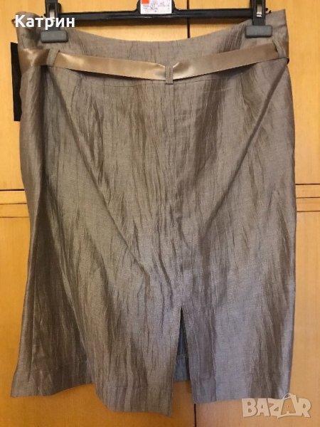 Сиво бежав костюм 100% лен- сако и пола. Чисто нов. Размер 42 европейска номерация. За повече информация на лично съобщение.