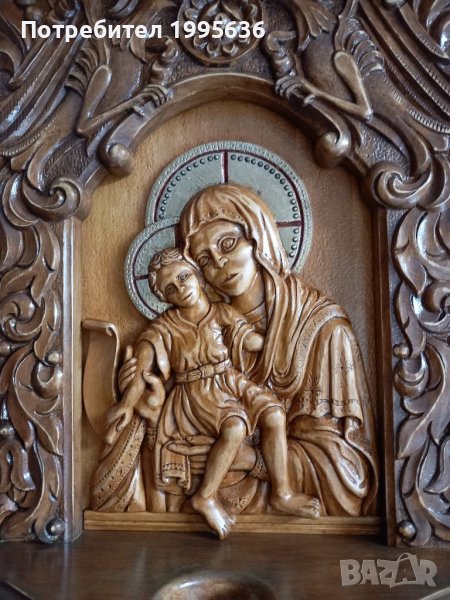 Дърворезба-домашен иконостас с релеф на чудотворната икона "Св.Богородица " → Обява 21948552