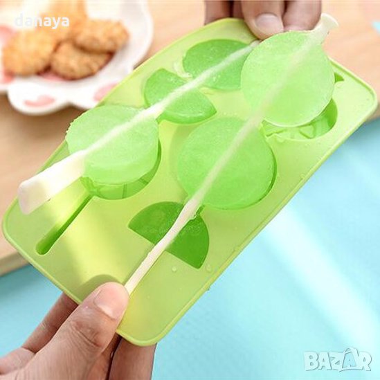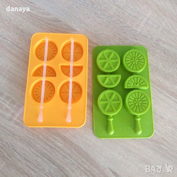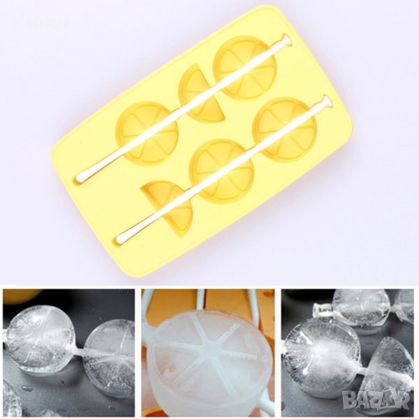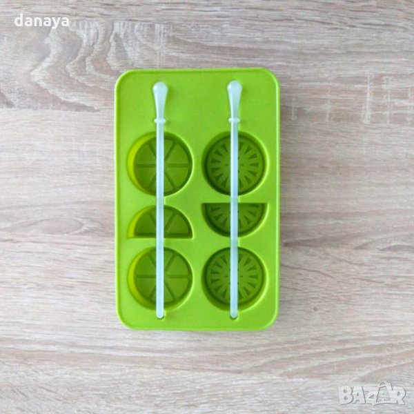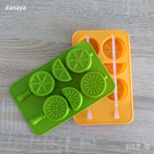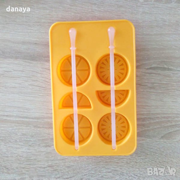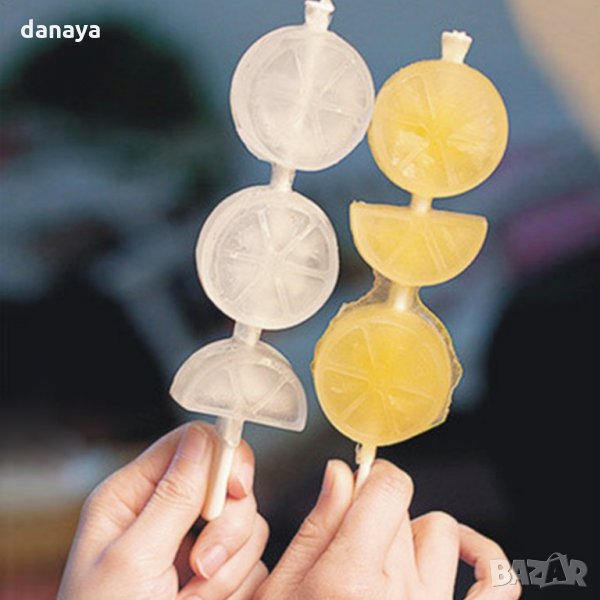 Силиконова форма за ледени близалки с форма на лимонови резенчета. Всяка тавичка има по две тройни форми за близалки и удобна дръжка за лесно захващане. Формите могат да се използват и за приготвяне на нестандартни форми кубчета лед. Децата обичат близалки! Зарадвайте ги с домашно приготвени лимонови близалки.